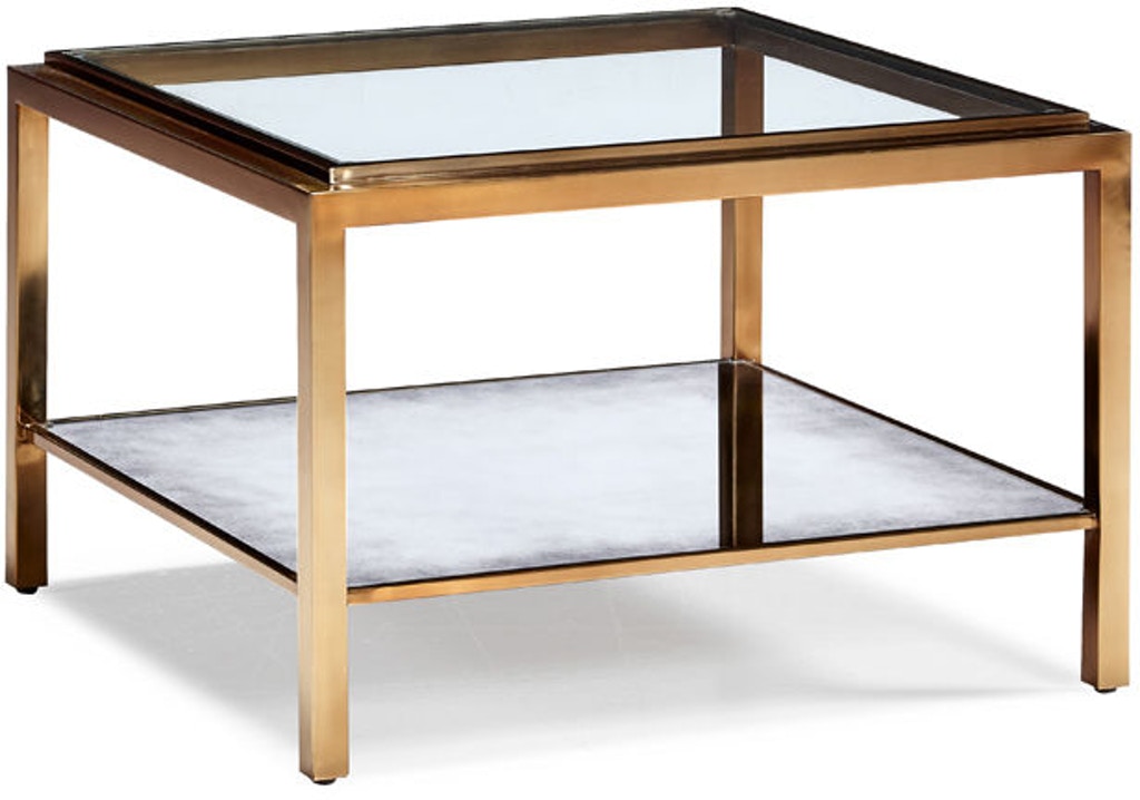 Stainless Steel in a Rose Gold Finish. Tempered Clear Glass Top. Antique Mirrored Glass Shelf.