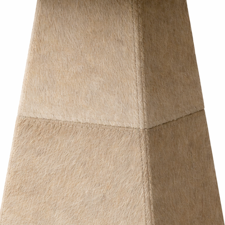 Materials: Honed Travertine, Hair-on-Hide Leather, Metal, Wood