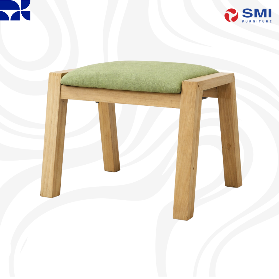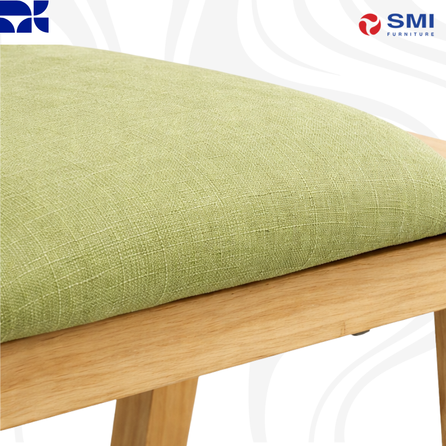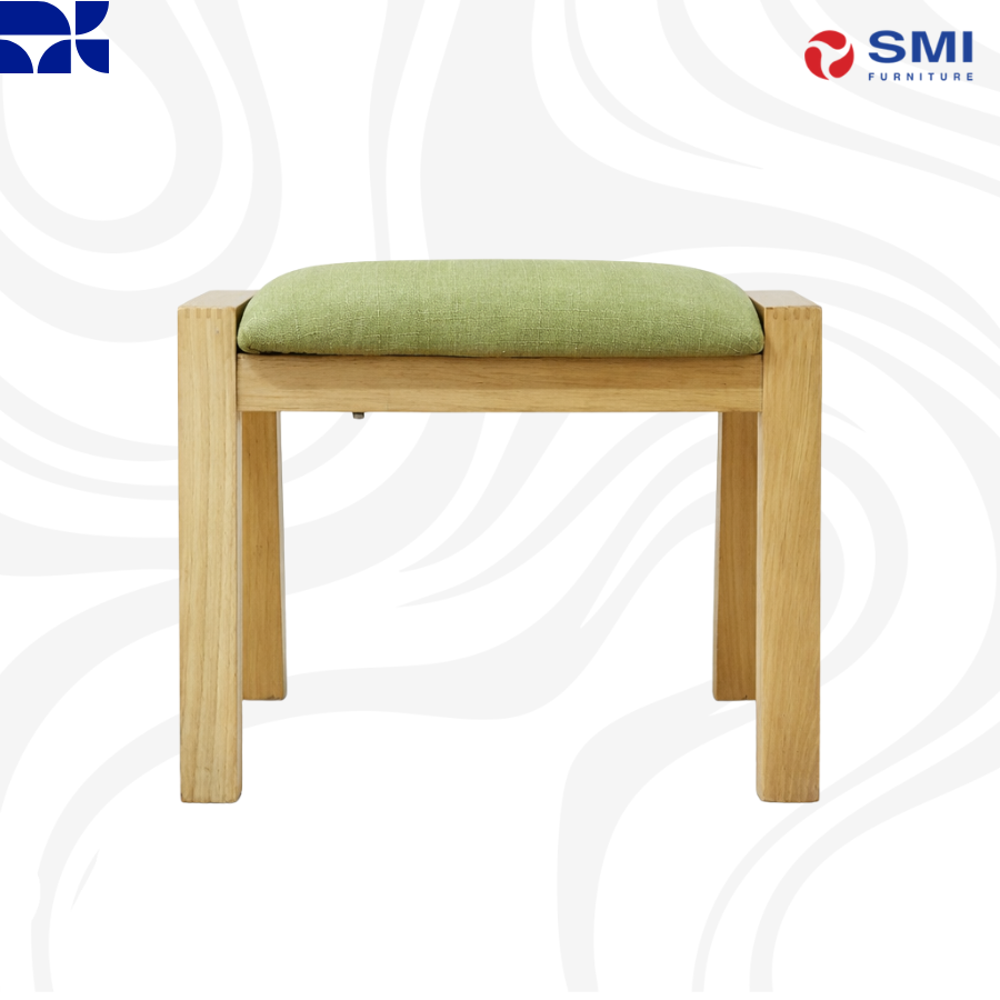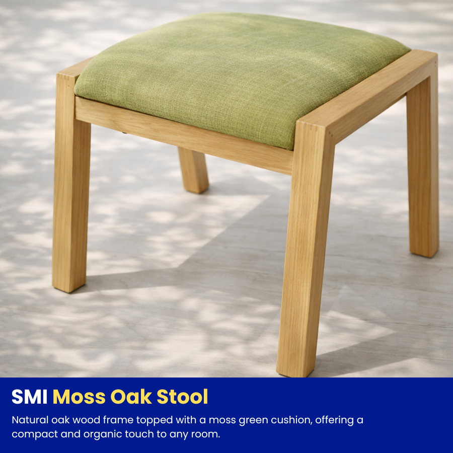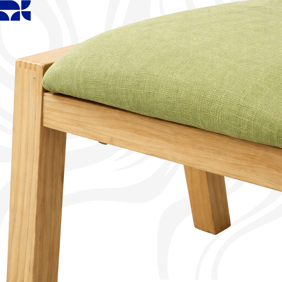 Natural oak wood frame topped with a moss green cushion, offering a compact and organic touch to any room.